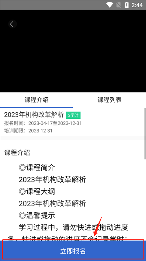 3、在这个页面不仅仅看到课程介绍以及课程列表,查看之后如果觉得自己感兴趣可以选择“立即报名”即可。