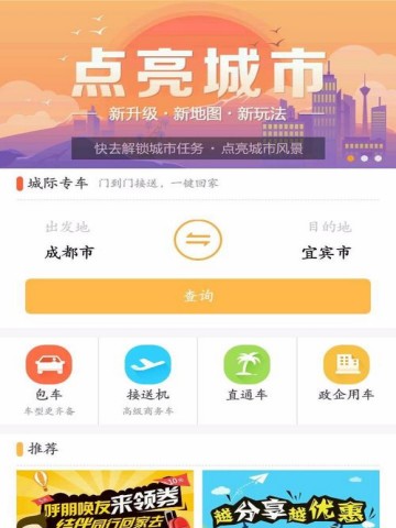 打开app,可直接看到城际专车,订票界面