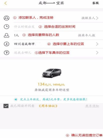 填写具体的乘车信息,包含联系人的电话,出发时间,乘车人数,上下车的具体位置