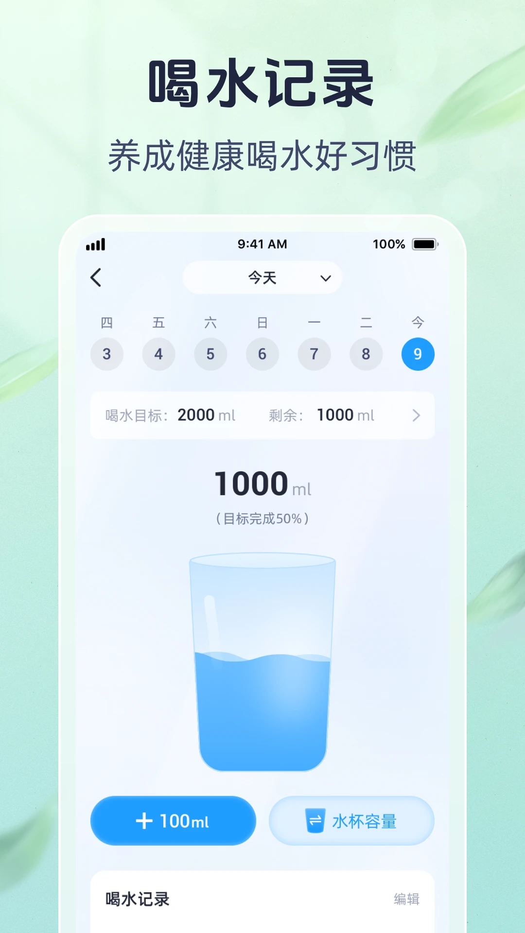 3、制定每日喝水目标,更直接的看到喝水的进度。