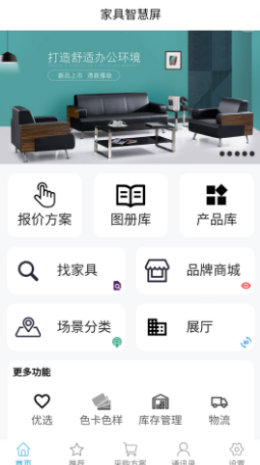 家具智慧屏app是一款非常完善的来为用户提供专业的家居服务的综合软件,软件导入了非常丰富的电子图册内容,用户可以在线浏览各种优质的家居信息并且直接对接商家来进行订单的查看和获取,同时还可以自由选择色卡,挑选自己最心仪的内容来进行定制,让生活更加高质量。