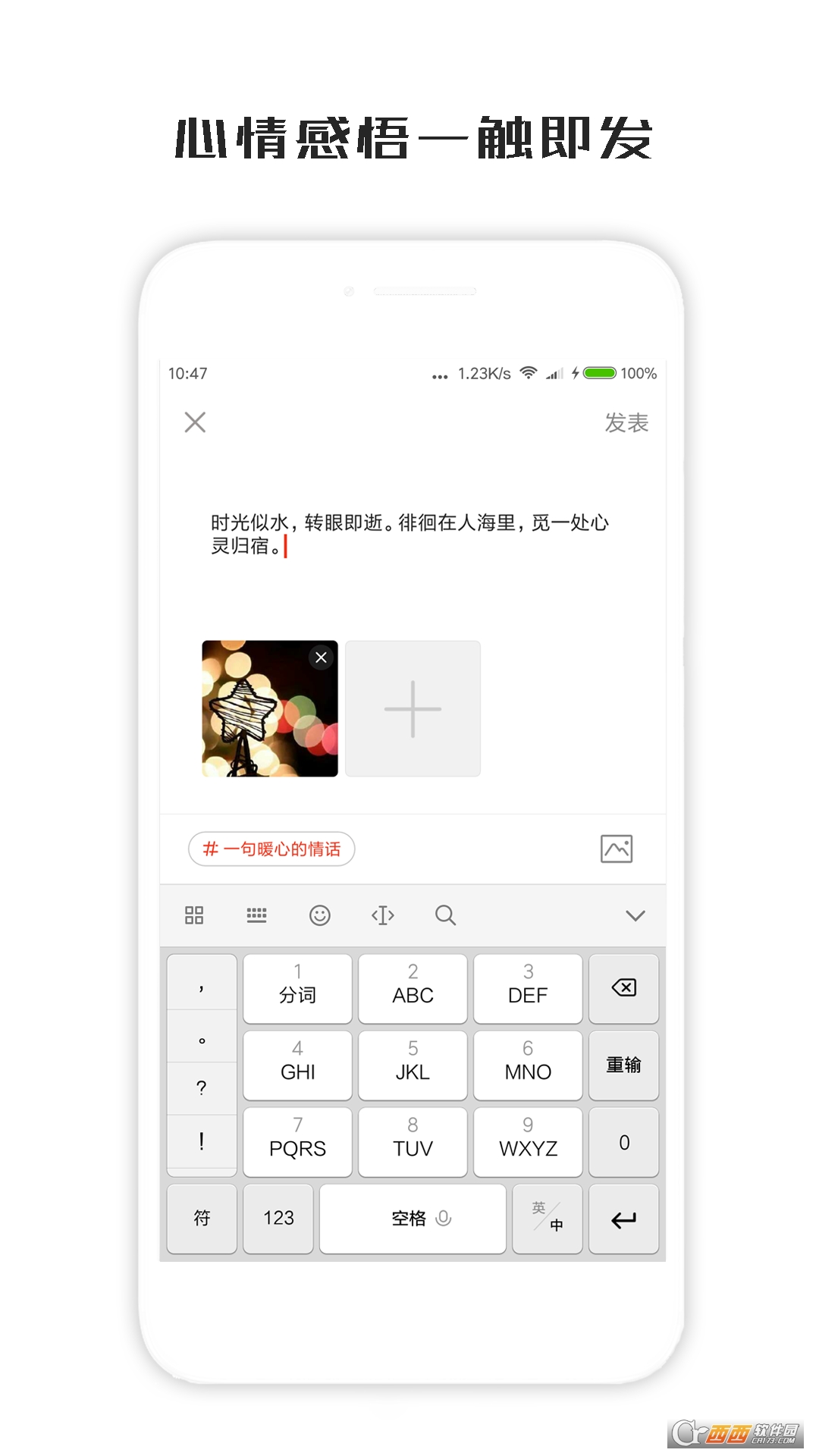 一句话心情签名是一款文学爱好者相互学习交流的社区类软件,用户不仅可以发表属于自己的心情,而且也可以对其他喜欢的内容进行收藏分享。为日后的创作提供新的灵感。