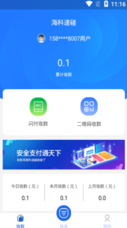 海科速碰app是一款通过程序模式设计来帮助各种商家用户进行日常商家运行收款的综合服务软件,软件建立了非常完善的收款模式,能够支持市面上主流的各种收款方式,包括闪付收款以及二维码等等,满足不同类型的各种收款需要,让商家可以更加方便的来进行工作。