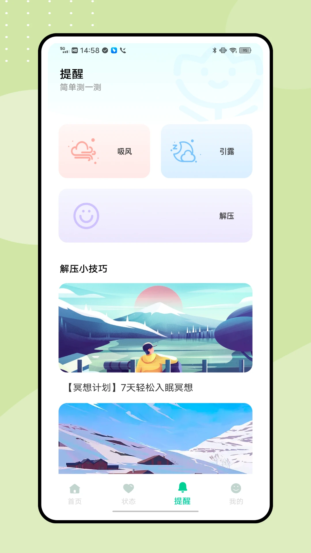 3、还有很多的放松技巧提供给用户学习,包括深呼吸、冥想等等。