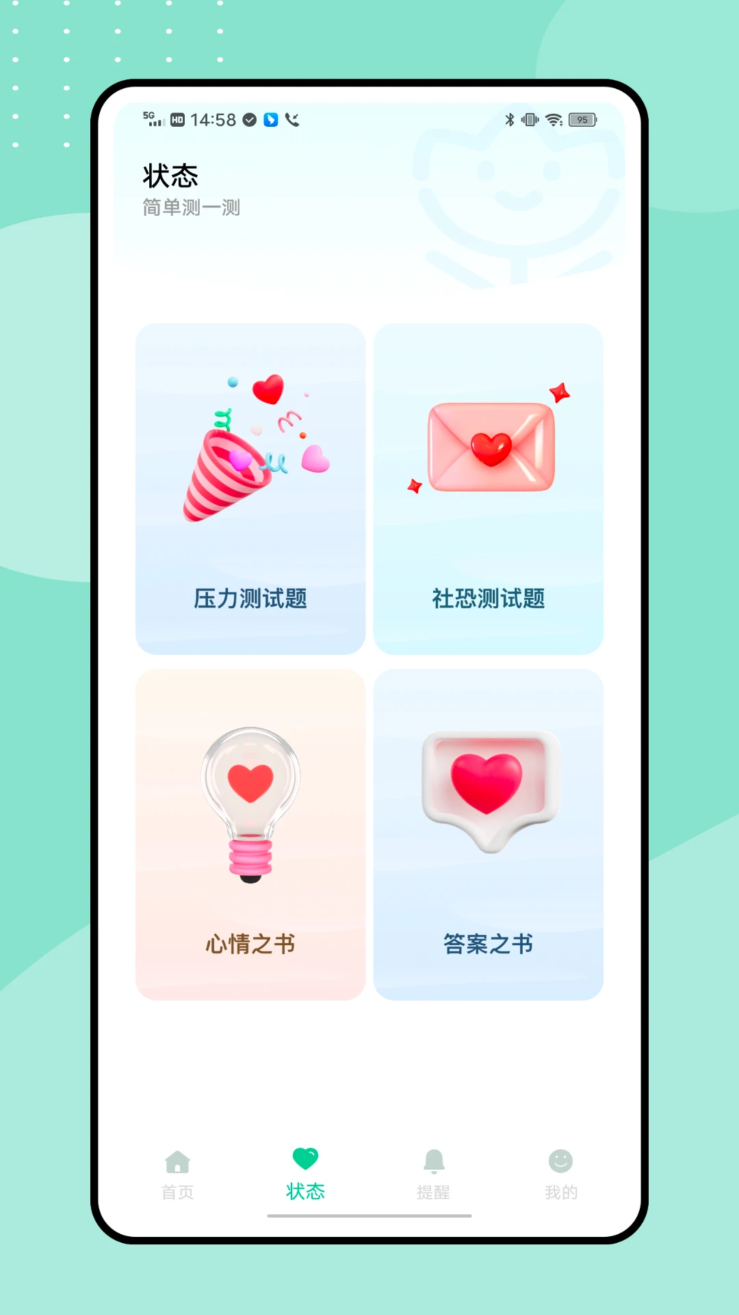 1、软件可以及时的给每个用户做出压力提醒,帮助用户调整自己的状态。