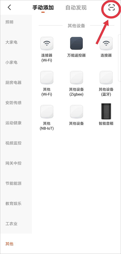 在手动添加的页面,选择这个设备对应的品类名称,选择Wi-Fi类型。