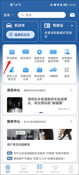 1、在首页中点击考试预约。