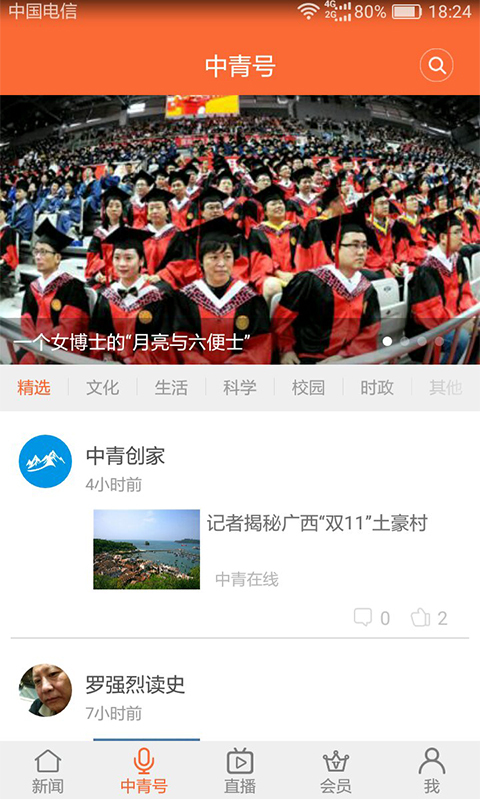 6、点击中青号即可查看热门推荐的短视频;