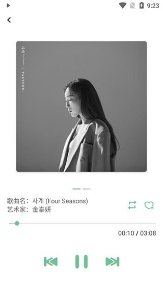 6.而且音乐播放界面也非常简洁,可收藏音乐,并对其进行播放方式的设置;