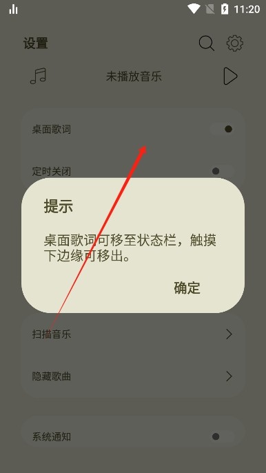 桌面歌词滑至状态栏自动变为状态栏歌词
