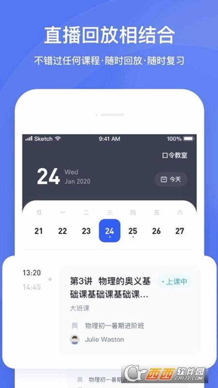 1.在手机和pad等多种客户端上学习课程,感受在线上课的魅力,和老师进行直播互动,参与多种互动形式,您可以无限次进行回放;