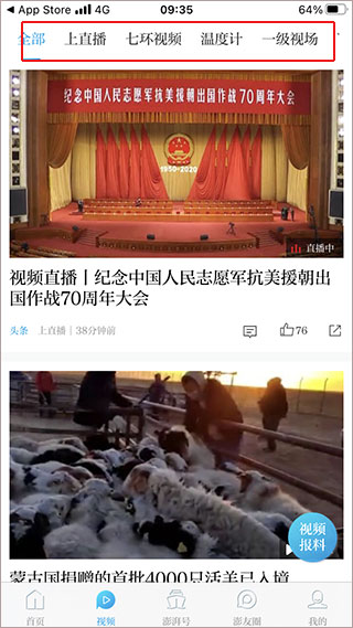 2、软件视频功能可以看到各种最近发生的视频和重要的直播。