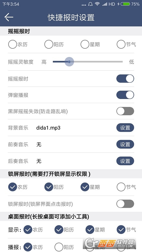 支持桌面小工具快捷报时、支持锁屏快捷报时、支持摇摇报时,支持按键报时