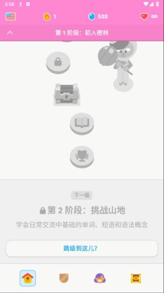 点击后可以看见我们又回到了最初选择学习语种的界面了。