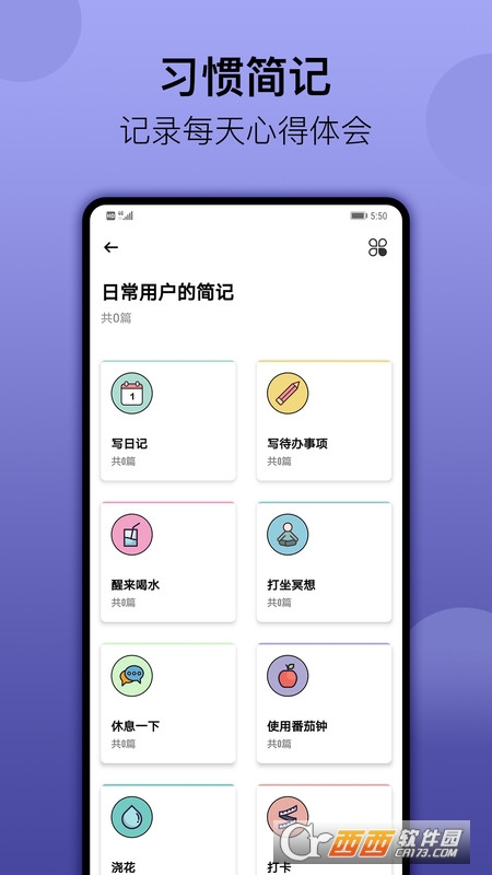 小习惯app是由厦门先北科技有限公司出品的一款生活打卡类软件。用户通过软件能够记录自己每日要做的事项安排进行打卡,帮助用户养成良好的生活习惯。有效管理自己的时间,提高工作效率。软件中还设置了多种可爱的图标内容,支持多个场景和模式进行创建,欢迎大家来鳄斗163手游网小习惯app使用。