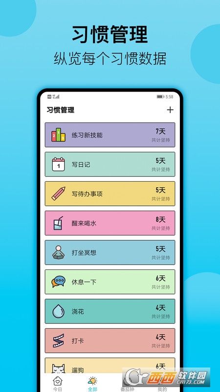 全部习惯:展示所有自己想养成的好习惯