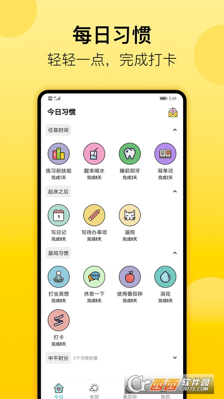 今天要坚持的习惯会单独呈现在 TODAY 页面中,轻轻一点图片即表示完成该习惯的打卡;