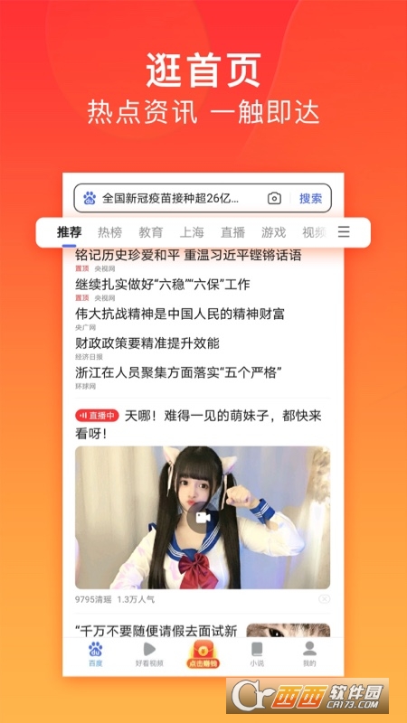 百度极速版app是一款界面简洁,内容全面的网络浏览类软件。软件中提供了小说阅读、影视浏览、新闻阅读等诸多内容。通过软件,用户在线进行内容的查找更加方便。通过浏览网页内容和资讯,还能够获取现金红包,不定额提现,快速到账。简洁干净的界面内容,快来下载百度极速版app试试吧。