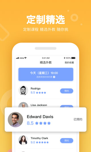 5、点击预约,用户可以在这里预约自己喜欢的外教,更好的安排自己的学习时间。
