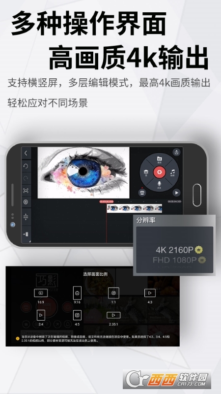 巧影,千万用户的选择,全新的扁平化设计,更符合国内用户的使用习惯,色度键(视频自由更换背景)、手写、一键变声以及丰富的