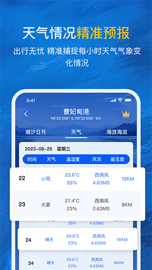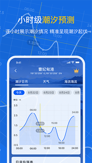 1.提供了多种的潮汐信息,实时的获取很多的高度