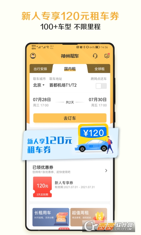 2021-04-26 版本: 7.4.1新人专享120元租车券