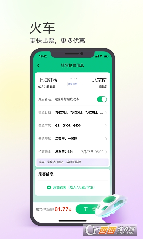 火车票:覆盖国内所有铁路线路,支持余票查询,在线退票、改签,快速出票不用等!