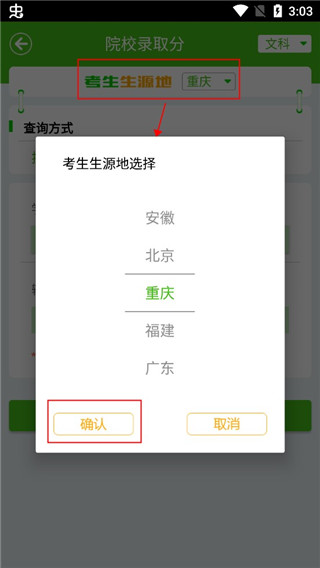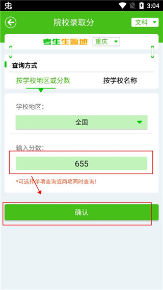 5、输入分数,选择自己想要去学校的城市,单击确定即可。