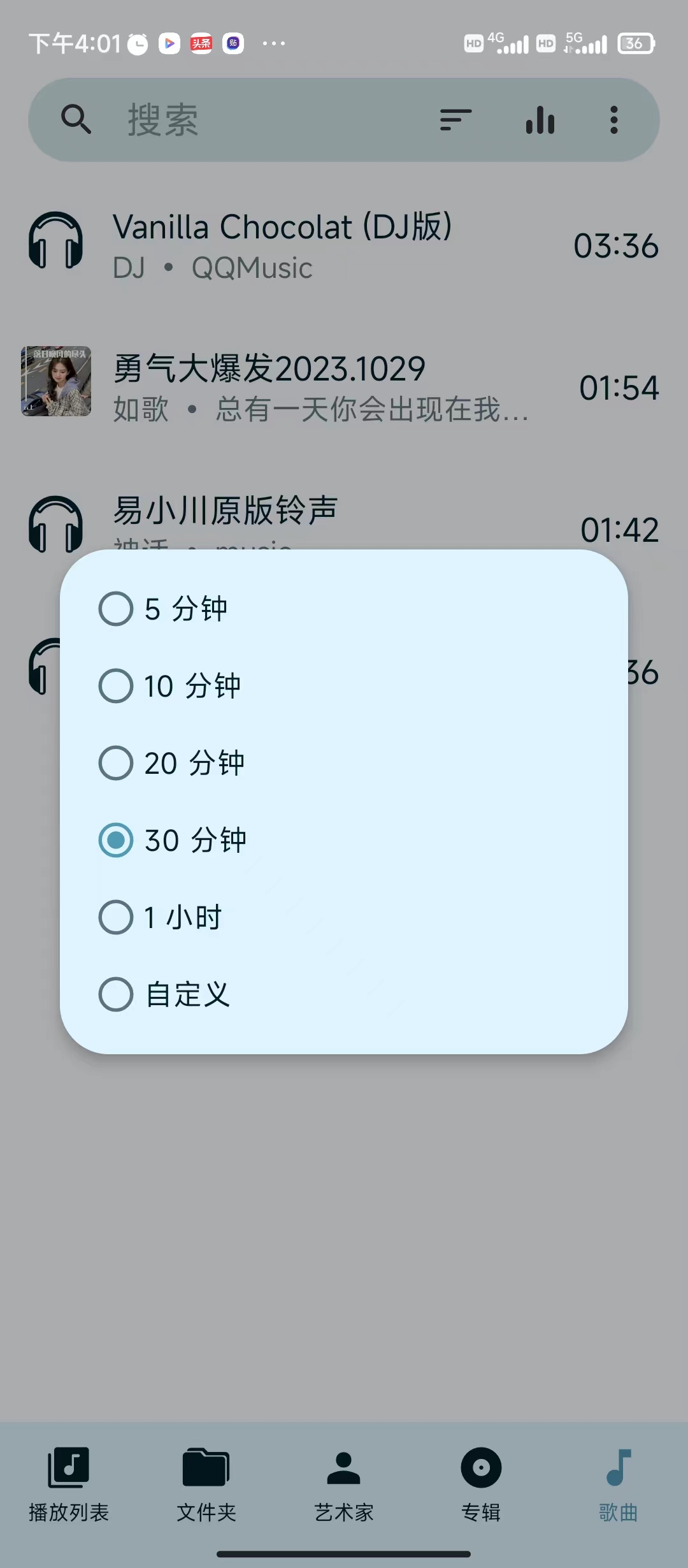定时关闭:提供定时关闭功能,适合睡前听歌的用户,不必担心整夜播放而消耗电量或影响休息。