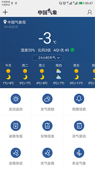 中国气象是一款集天气预测、气象资讯、环境数据监测等多功能于一体的综合性气象服务软件。它由国家气象信息中心开发,利用先进的气象数据采集技术和大数据分析方法,为用户提供精确的天气预报和丰富的气象信息服务。无论是出行规划、健康防护还是农业生产,中国气象APP都能提供强有力的信息支持,成为用户日常生活中不可或缺的智能助手。