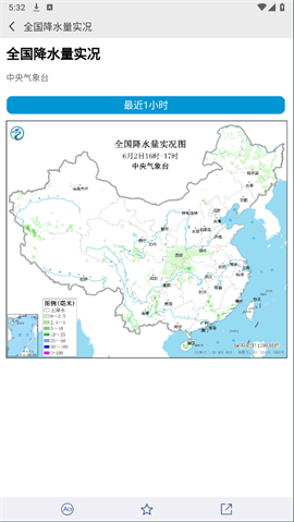 4、点击全国降水实况,可以查看实时全国降水情况