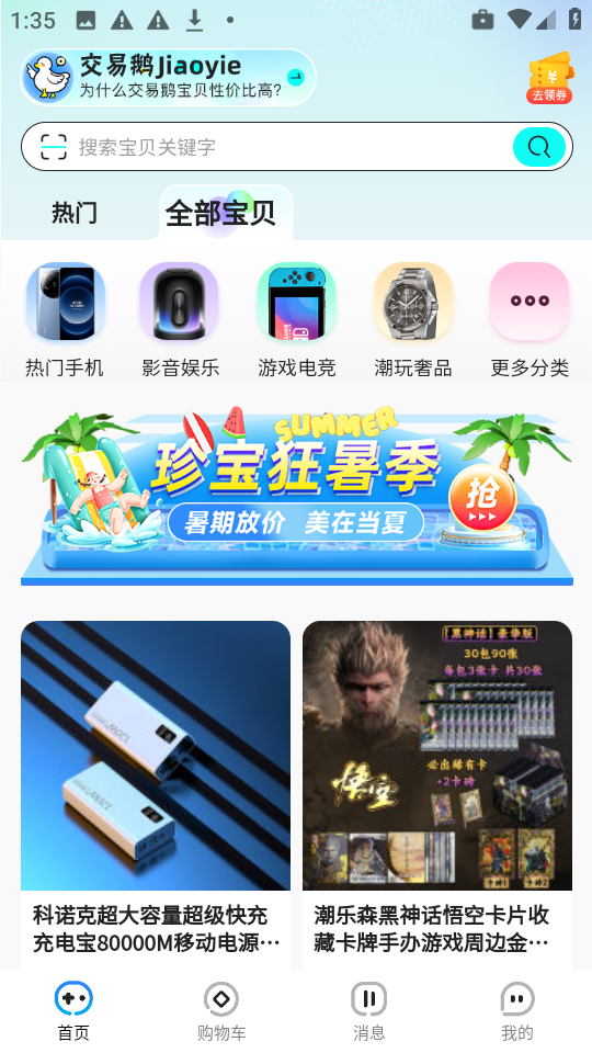 交易鹅软件是一款二次元动漫周边交易软件,用户在这里可以购买到很多自己喜欢的动漫周边,包括各种手办、电子设备等等,软件还会给新人用户提供免费的优惠券,用户可以购买到折扣的商品,而且还会有全天候的客服随时回复,用户可以放心下载使用。