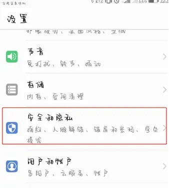 在设置的界面里点击“安全和隐私”,进入安全和隐私设置界面