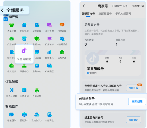 适用场景:商家已经用旧版抖音号后台绑定了个人号。由于个人号功能即将下线,需尽快升级