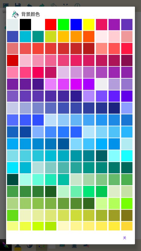 2、如下图所示,顶部图标分别代表清空画板、保存、撤销、局部放大以及收藏功能,下方是画笔、颜色、随机颜色、背景、相册以及分享等功能。