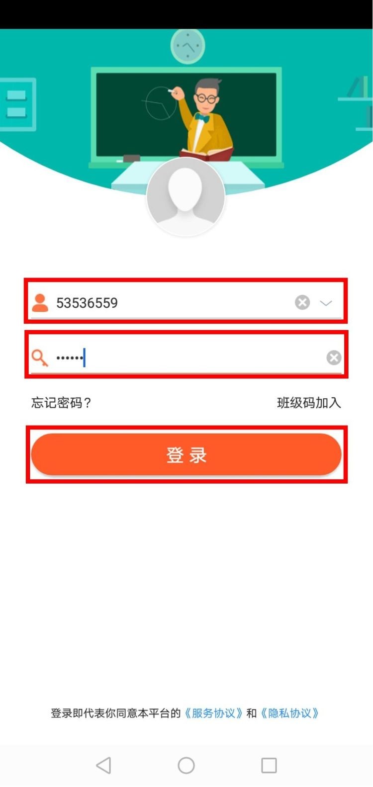 输入老师下发的“学乐云”账号和密码,点击“登录”。