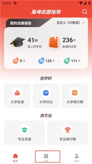 1、在本站下载高考志愿指导app后进入,点击志愿;