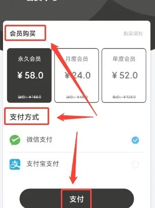 进入会员中心窗口,选择会员时长、支付方式,点击支付。