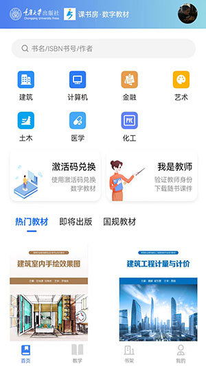 “课书房”是数字教材的出版与应用平台,基于教材为高校教师与学生服务提供全流程教学辅助服务。功能包括:教材选订、阅读、笔记,教师备课、授课、任务布置等。