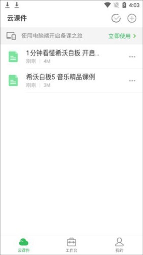 打开希沃白板app。打开下方的云课件主页。