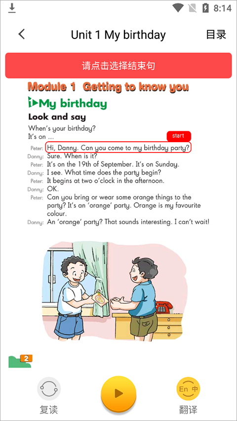 6、选择第一句要复读的语句