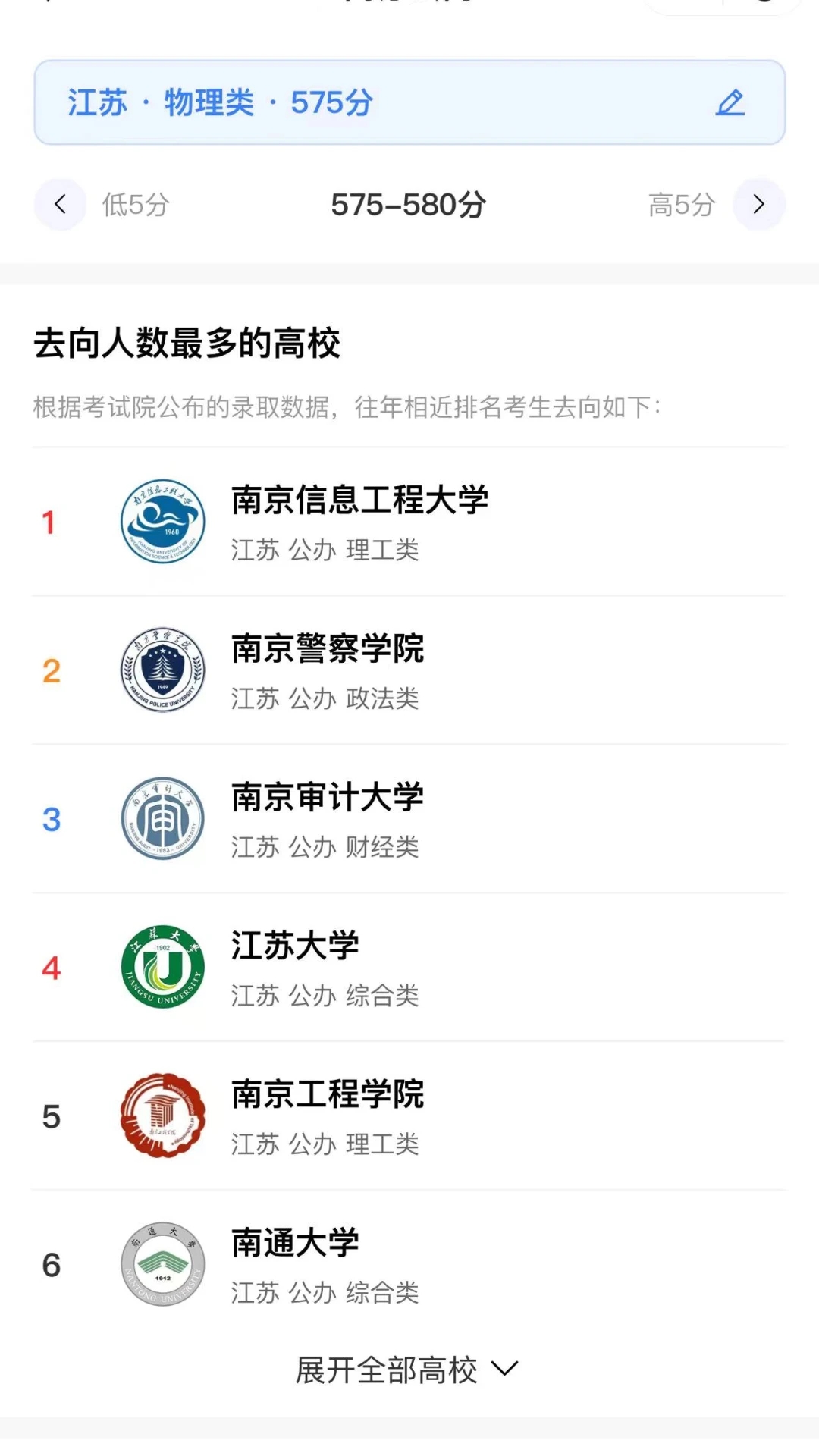 3.高校信息可以直接在这里查看,用户可以找到自己喜欢的大学专业