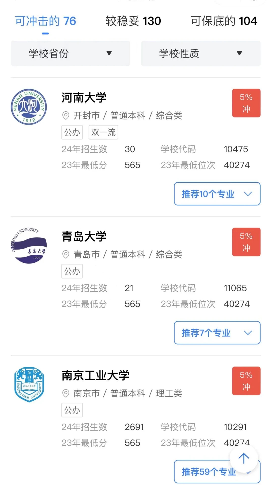 1.稳定进行志愿高考填写,保底选择不同的高考学校学生填报大学