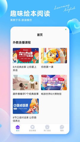 3、丰富多彩教学资源,包含多类型口语演习视频,智能打分,迅速提升英语听闻沟通交流技能。