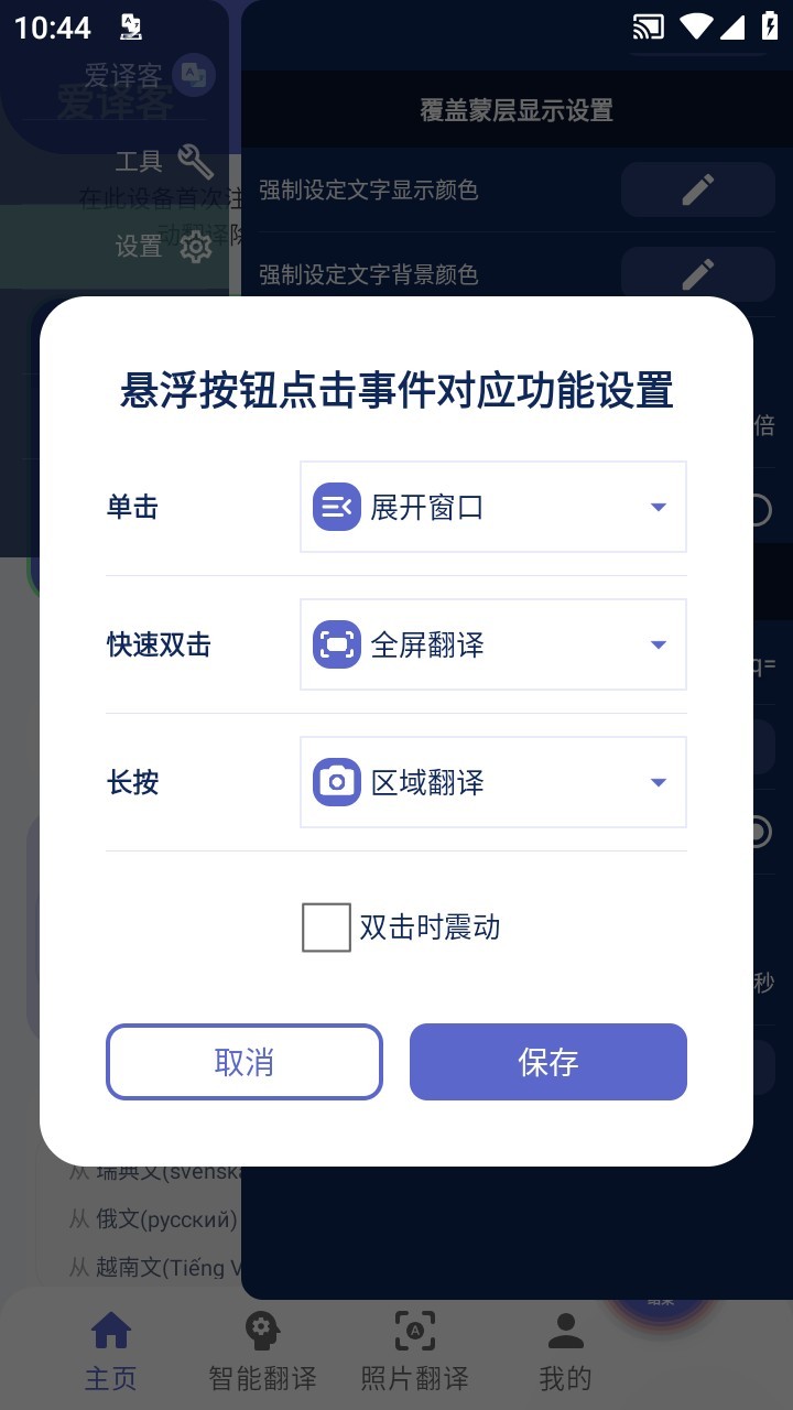 - 悬浮窗显示, 双击快速全屏翻译; - 支持翻译屏幕选定区域, 更快更准确;