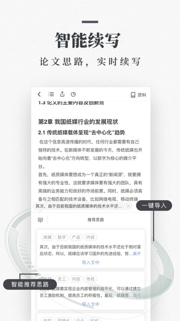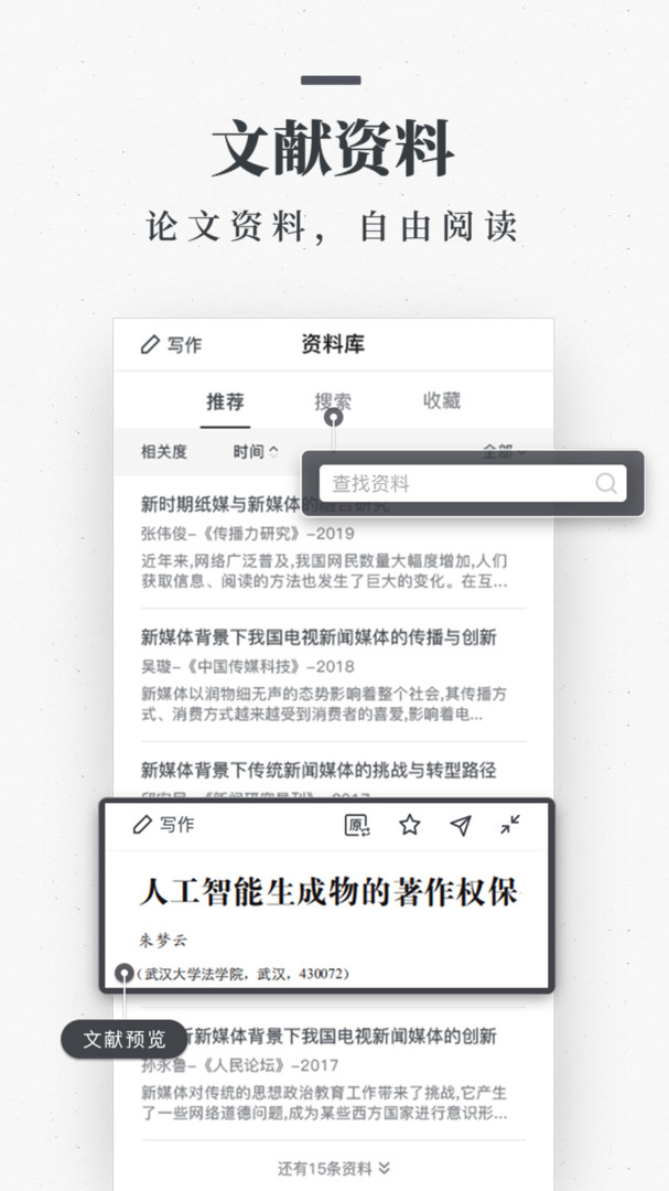 写不出东西的时候,它能给你推荐一些相关的资料,激发灵感。