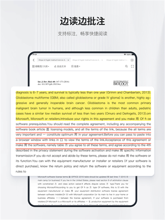 1、下载安装好软件后,进入软件打开要看的文献资料,长按选中段落,点击“翻译“按钮,即可翻译。