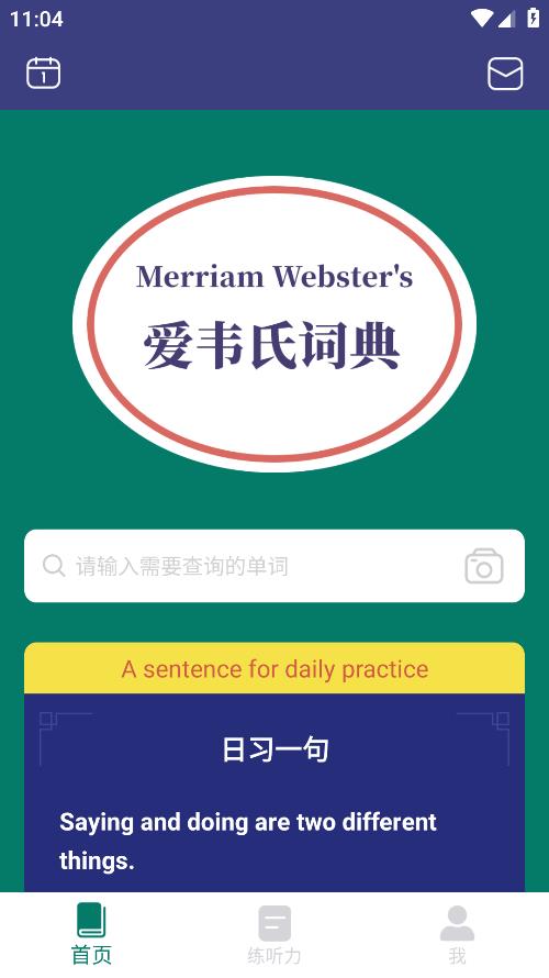 1、练听力、查单词、每日一练全部都有,首先本页面下载安装“爱韦氏词典”