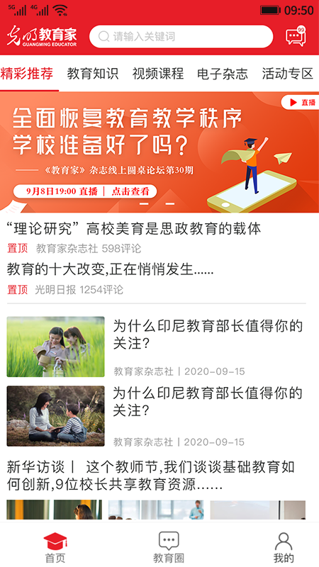 3、光明教育家:提供的教育信息非常全面,提供了在线信息和新闻,还可以帮助师生提高能力。