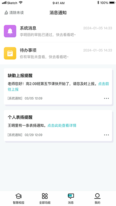 2、采取一对一的信息传播模式,老师发送的每一个通知都会精准推送到家长主页。